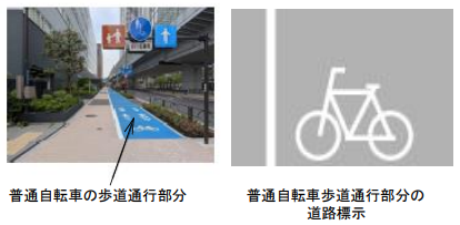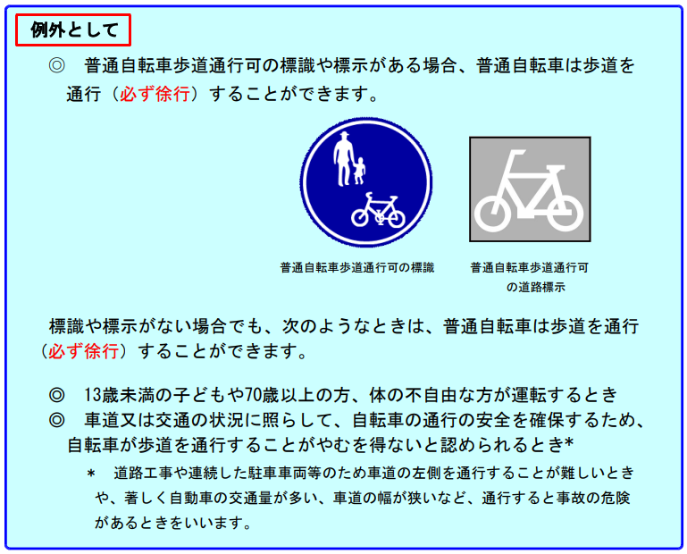 ※普通自転車の歩道通行部分に限り、歩行者がいないときは、歩道の状況に応じた安全な速度と方法で進行することができます。